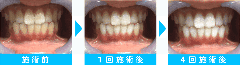 歯の本数による料金アップはありません。お口を開けて、見える範囲すべてのホワイトニングで一律料金です。効果の出方には個人差がございますが、1回の施術で2~4トーン白くなる方が多くいらっしゃいます。