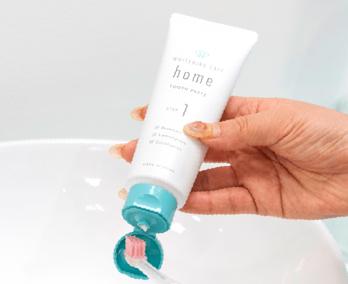 オリジナル商品「home」歯磨き粉を使用して歯磨きをします。