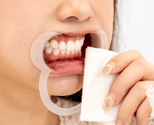 広範囲にホワイトニング効果を発揮するためマウスオープナー(開口器)を装着します。